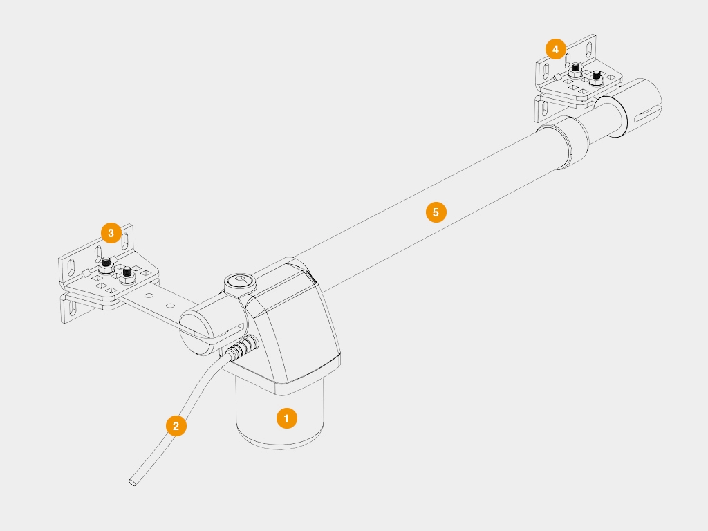 Два электроприводa, блок управления в корпусе, крепежные элементы, ключ расцепителя.