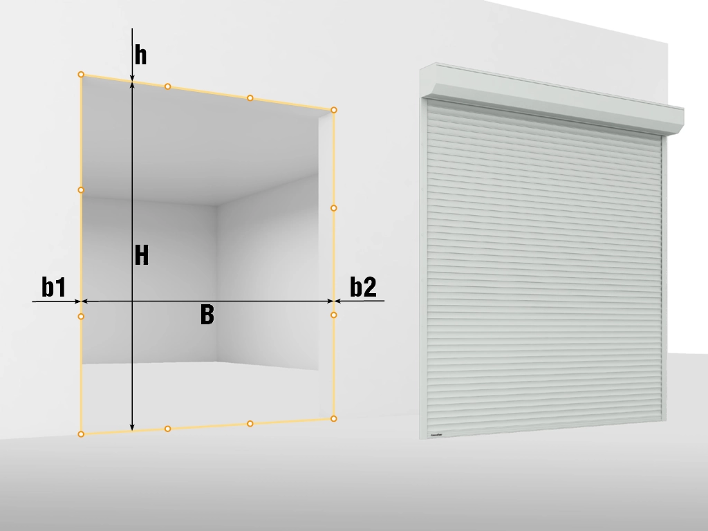 Внимание! Все замеры проводятся в трех разных точках. Замерьте ширину проема (B) и запишите максимальное значение.